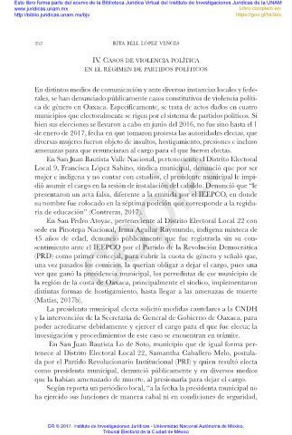 ca de género en Oaxaca. Específicamente, se trata de actos dados en cuatro