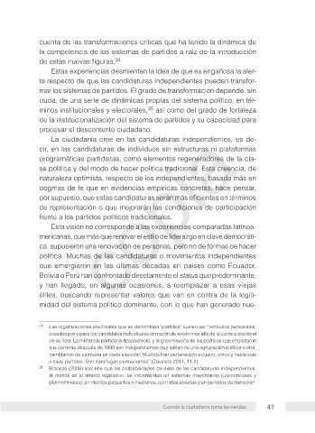 35 Brancati (2008) sostiene que las probabilidades de éxito de las candidaturas independientes,