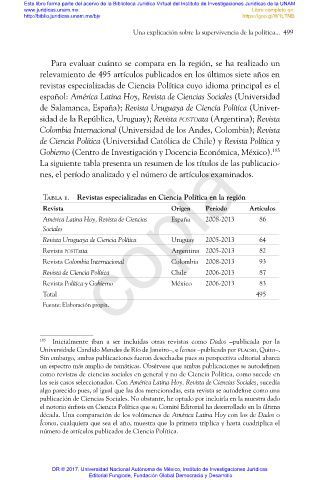 como revistas de ciencias sociales en general y no de Ciencia Política, como sucede en