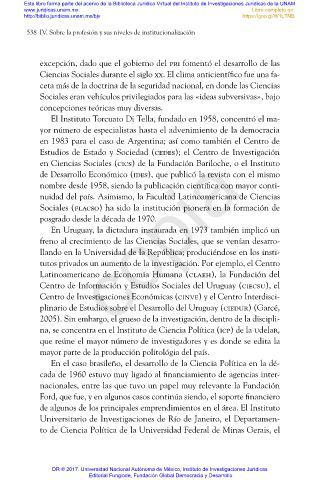 en Ciencias Sociales (cics) de la Fundación Bariloche, o el Instituto