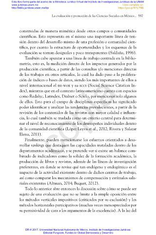 La evaluación y promoción de las Ciencias Sociales en México... 587