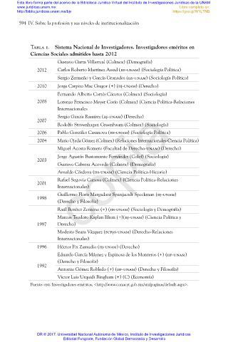 Tabla 1. Sistema nacional de investigadores. investigadores eméritos en