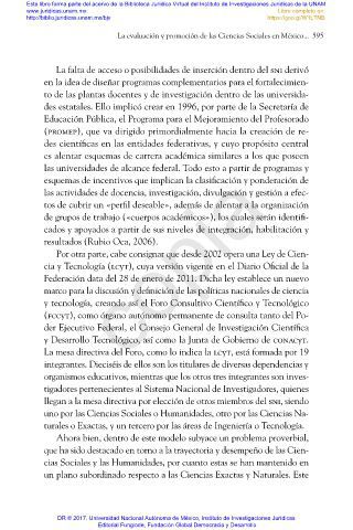 La evaluación y promoción de las Ciencias Sociales en México... 595