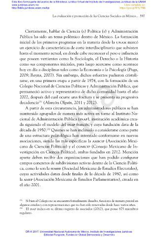 La evaluación y promoción de las Ciencias Sociales en México... 597
