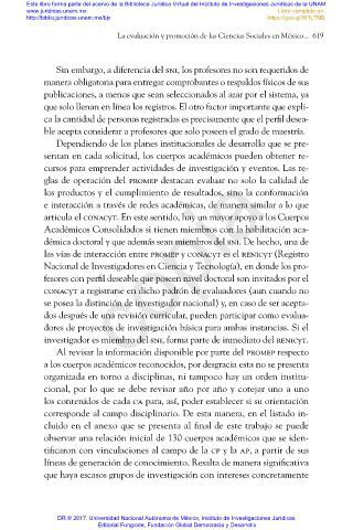 La evaluación y promoción de las Ciencias Sociales en México... 619