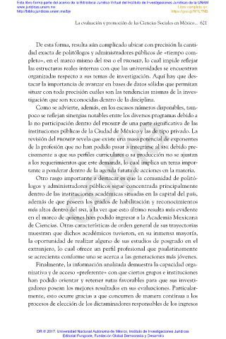 La evaluación y promoción de las Ciencias Sociales en México... 621