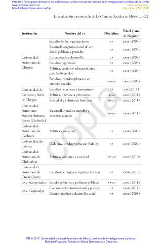 La evaluación y promoción de las Ciencias Sociales en México... 627