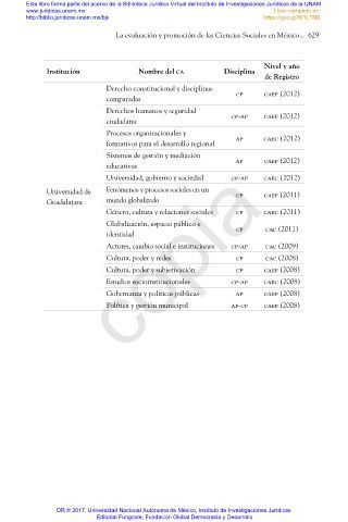 La evaluación y promoción de las Ciencias Sociales en México... 629