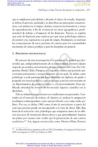 Politólogos en fuga: Patrones divergentes de emigración... 637