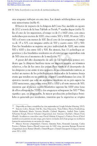 500 y 1000 y dos entre 100 y 500. En síntesis, hay 11 politólogos ar-