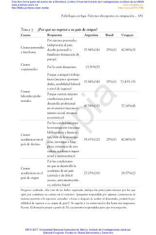 Tabla 7. ¿Por qué no regresó a su país de origen?