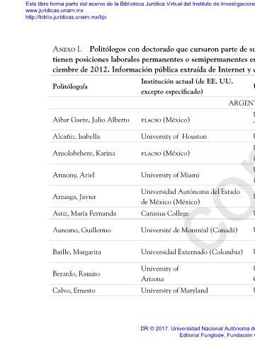 www.juridicas.unam.mx http://biblio.juridicas.unam.mx/bjv Anexo I. Politólogo/a Aibar Gaete, Julio Alberto Alcañiz, Isabella Ansolabehere, Karina Armony, Ariel Arzuaga, Javier Astiz, María Fernanda Aureano, Guillermo Batlle, Margarita Berardo, Ramiro Calvo, Ernesto