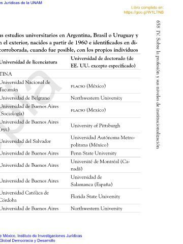 Universidad de doctorado (de ee. UU. excepto especificado) flacso (México) Northwestern University flacso (Mexico) University of Pittsburgh Universidad Autónoma Metro- politana (México) Penn State University Université de Montréal (Ca- nadá) Universidad de Salamanca (España) Florida State University Northw