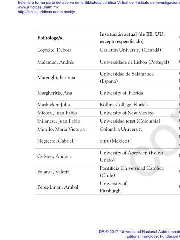 www.juridicas.unam.mx http://biblio.juridicas.unam.mx/bjv Politólogo/a Lopreite, Débora Malamud, Andrés Marenghi, Patricia Margheritis, Ana Maskivker, Julia Micozzi, Juan Pablo Milanese, Juan Pablo Murillo, María Victoria Negretto, Gabriel Oelsner, Andrea Palanza, Valeria Pérez-Liñán, Aníbal