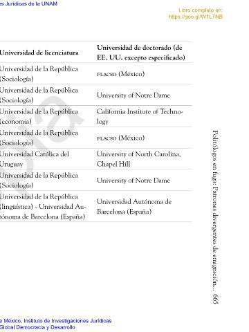Universidad de doctorado (de ee. UU. excepto especificado) flacso (México) University of Notre Dame California Institute of Techno- logy flacso (México) University of North Carolina, Chapel Hill University of Notre Dame Universidad Autónoma de Barcelona (España)