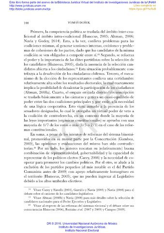 18 Véase Carey y Siavelis (2003), Garrido y Navia (2005) y Navia (2008) para el