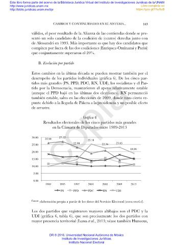 desempeño de los partidos individuales (gráfica 6). De los cinco par-