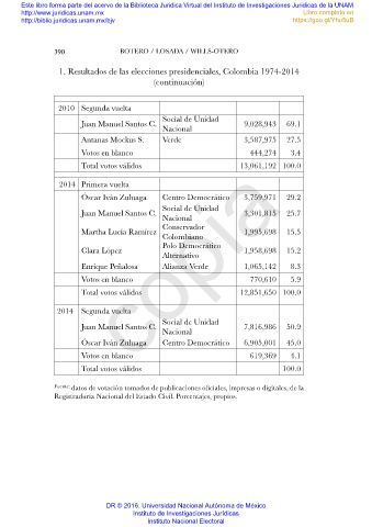 1. Resultados de las elecciones presidenciales, Colombia 1974-2014