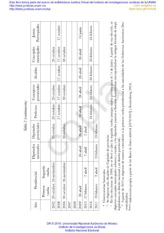 Tabla 2 (continuación) Diputados Prefectos provinciales 20 octubre 20 octubre copia 19 febrero En las elecciones de 2009, no se llevó a cabo la segunda vuelta (aunque estaba prevista para el 14 de junio). A partir de esa elección, se eligieron concejales municipales urbanos y rurales, y los diputados pasaron a llamarse Asambleístas (incorp