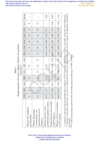 Tabla 5 Fragmentación electoral y número efectivo de partidos 1979-2013 1992 1990 14 copia 6.40 6.68 La primera vuelta de la elección presidencial se realizó en 1978; la segunda vuelta se hizo en 1979 y coincidió con las elecciones legislativas. Las columnas sombreadas indican por una parte la celebración de elecciones presidenciales y l