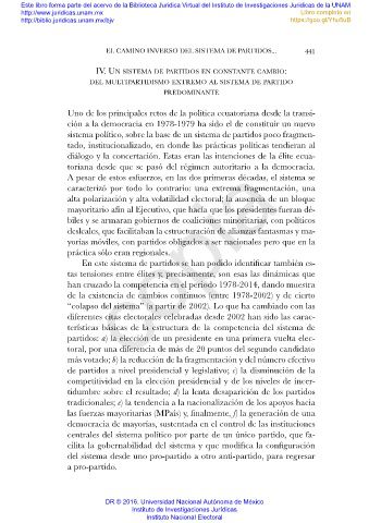 EL CAMINO INVERSO DEL SISTEMA DE PARTIDOS... 441
