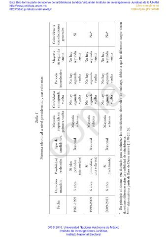 Tabla 1 Sistema electoral a nivel presidencial y sus reformas Mayoría copia Mayoría relativa En principio el sistema está diseñado para minimizar las coincidencias electorales, sin embargo, debido a que los diferentes cargos tienen