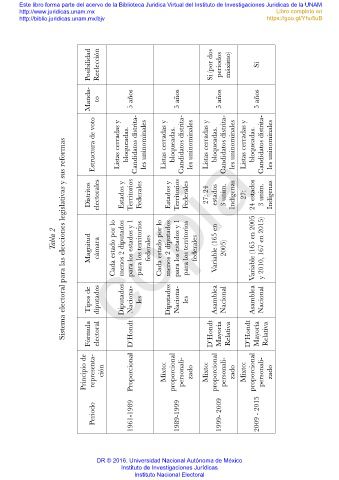 Tabla 2 Sistema electoral para las elecciones legislativas y sus reformas Magnitud cámara Cada estado por lo copia federales Variable (165 en 2005) Variable (165 en 2005 y 2010, 167 en 2015)