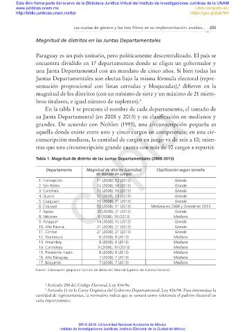 Tabla 1. Magnitud de distrito de las Juntas Departamentales (2008-2013)