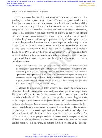 terior de los partidos Las autoras documentan que las mujeres representan