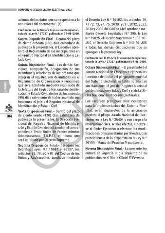 Page 104 - COMPENDIO DE LEGISLACIÓN ELECTORAL 2020 - JNE