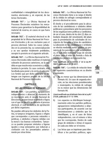 turaleza lo permita. En caso contrario, está Artículo 166°.- La cédula de votación tiene