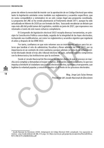 Page 18 - COMPENDIO DE LEGISLACIÓN ELECTORAL 2020 - JNE