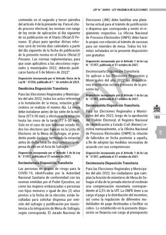 Para las Elecciones Regionales y Municipa- Disposición incorporada por el Artículo 1 de la Ley
