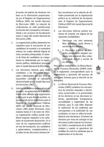 Page 193 - COMPENDIO DE LEGISLACIÓN ELECTORAL 2020 - JNE