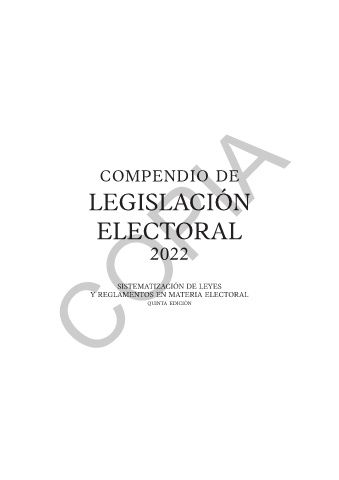 J COPIA COMPENDIO DE LEGISLACIÓN ELECTORAL 2022 SISTEMATIZACIÓN DE LEYES Y REGLAMENTOS EN MATERIA ELECTORAL quinta edición