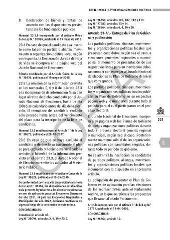 Numeral 23.5 modificado por el Artículo 1° de la Ley todo el proceso electoral general, regional
