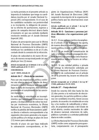 Page 230 - COMPENDIO DE LEGISLACIÓN ELECTORAL 2020 - JNE