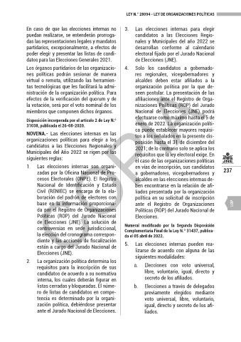 31038, publicada el 26-08-2020. enero de 2022. La organización políti-