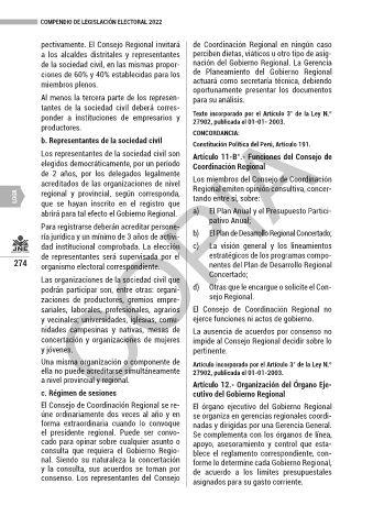 274 organismo electoral correspondiente. nentes del Plan de Desarrollo Regional