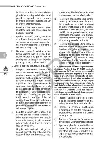 El Consejo Regional está facultado para: (*) De conformidad con la Primera Disposición Com-