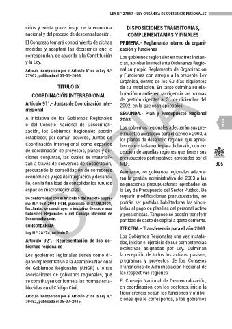 LEY N.° 27867 - LEY ORGÁNICA DE GOBIERNOS REGIONALES
