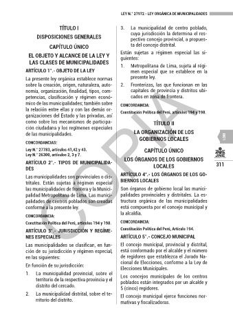 ARTÍCULO 2°.- TIPOS DE MUNICIPALIDA- LOS ÓRGANOS DE LOS GOBIERNOS 311