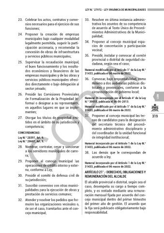 27. Otorgar los títulos de propiedad emi- 37. Proponer al concejo municipal las ter- 319