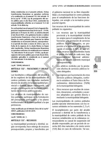 LEY N.° 27972 - LEY ORGÁNICA DE MUNICIPALIDADES