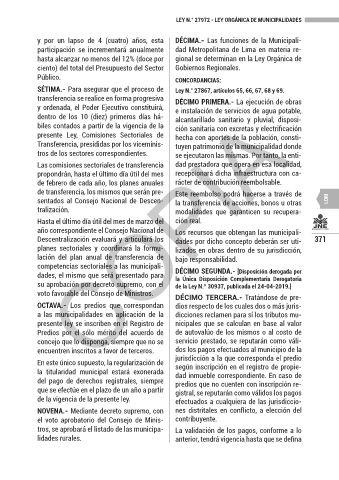LEY N.° 27972 - LEY ORGÁNICA DE MUNICIPALIDADES