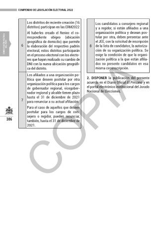 Page 386 - COMPENDIO DE LEGISLACIÓN ELECTORAL 2020 - JNE