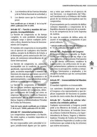28607, publicada el 04-10-2005. comunes imputados a congresistas de la CONSTITUCIÓN POLÍTICA DEL PERÚ