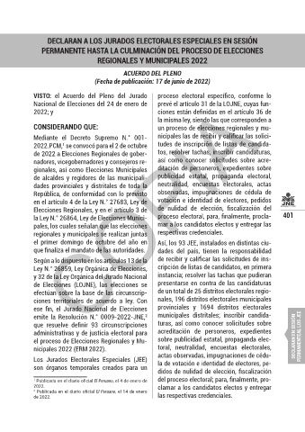 la Ley N.° 26864, Ley de Elecciones Munici- proceso electoral, para, finalmente, procla- 401