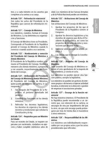 Artículo 120°.- Refrendación ministerial Artículo 125°.- Atribuciones del Consejo de