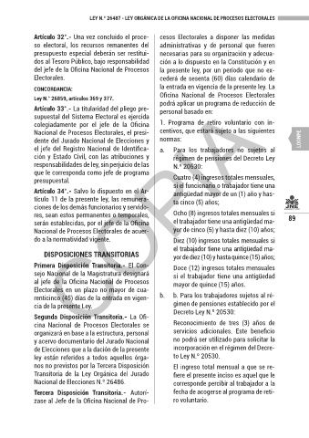 Ley N.° 26859, artículos 369 y 377. Oficina Nacional de Procesos Electorales
